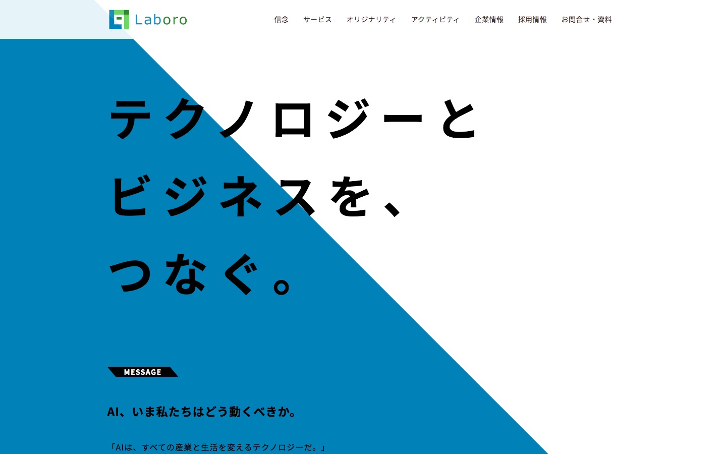 株式会社 Laboro.AIは、東京都中央区のシステム開発会社です。テクノロジーとビジネスをつなぐことを目的として、サービス提供を行っています。
