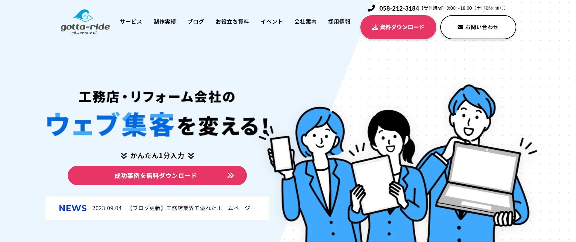 工務店に特化したHP制作サービスを展開しています。工務店やビルダー向けのウェブ集客の弱点に絞った施策の提案が可能です。