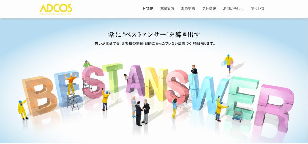 株式会社アドコスは、デザイン制作・販促支援に強みを持つ制作会社です。広告会社として創業してから50年以上にわたって多種多様な業界のビジネスを支援してきた実績があります。サイト制作だけでなくパンフレットやチラシ、ロゴ作成など様々な手段を通じてクオリティの高い販促支援を行います。