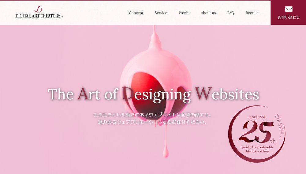 デジタルアートクリエイターズ株式会社は、デザイン制作を得意とする制作会社です。WEBデザインや各種印刷物・映像の制作を中心に、サーバーやドメインの取得からシステム開発、サイト運営サポートまでワンストップでサービス提供が可能です。25年にわたり、5000社以上のサイト制作を手がけてきた豊富な知見を活かし、細かい点までこだわった質の高いサイトを制作します。