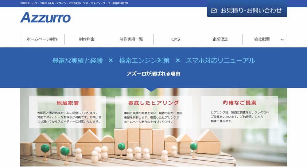 有限会社アズーロは、サイト制作から運用代行までを一貫して行っている制作会社です。サイト制作では完全オーダーメイドで制作しているほか、システム開発や動画制作、SEO対策、ロゴ作成などオプションも豊富に用意されています。作業内容ごとに料金を明示しているため、料金がどれだけかかるかが分かりやすい点も魅力です。