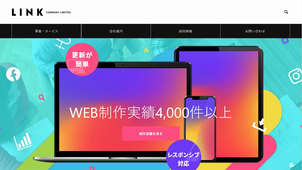 株式会社リンクは4000件以上のサイト制作実績を誇る制作会社です。サイト制作ではCMSを用いた低価格で管理しやすいサイト制作を得意としているため、初めてサイト制作をお考えの方や、コストを抑えて制作したいとお考えの方におすすめです。打ち合わせの際も、オリジナルの戦略フローを用いて会社ごとに最適なサイト企画を提案します。