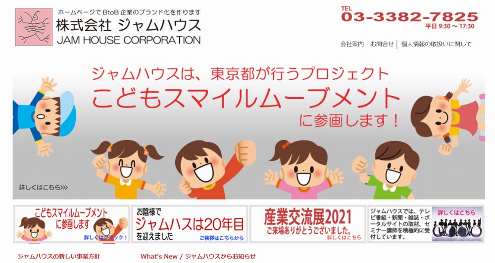 株式会社ジャムハウスは、中小企業のサイト制作に特化している制作会社です。15年以上にわたりサイト制作やビジネスのサポートを手がけてきたノウハウを活かし、集客や採用などあらゆるお悩みを解決します。展示会への出展サポートや求人に関するコンサルティングも行っています。説明会や展示会のコンセプト企画や業務設計など、様々な業務のサポートが可能です。