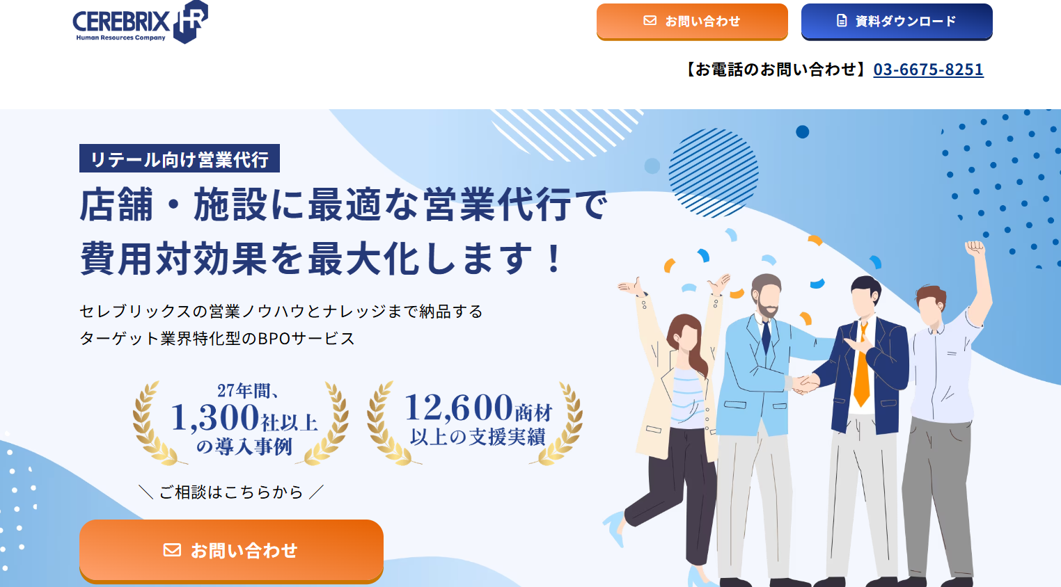 セレブリックスは、企業規模を問わず、幅広い業種での支援実績を持つ営業代行会社です。「買わない理由をなくす」独自の営業メソッドが強みで、1,200社12,000商品の支援実績から得た成功・失敗データをもとに、最適な営業方法でクライアントの課題解決をサポートします。