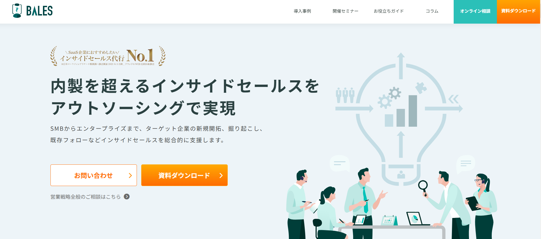 BALESは、インサイドセールスの導入から運用、改善までを総合的にサポートする営業代行業者です。