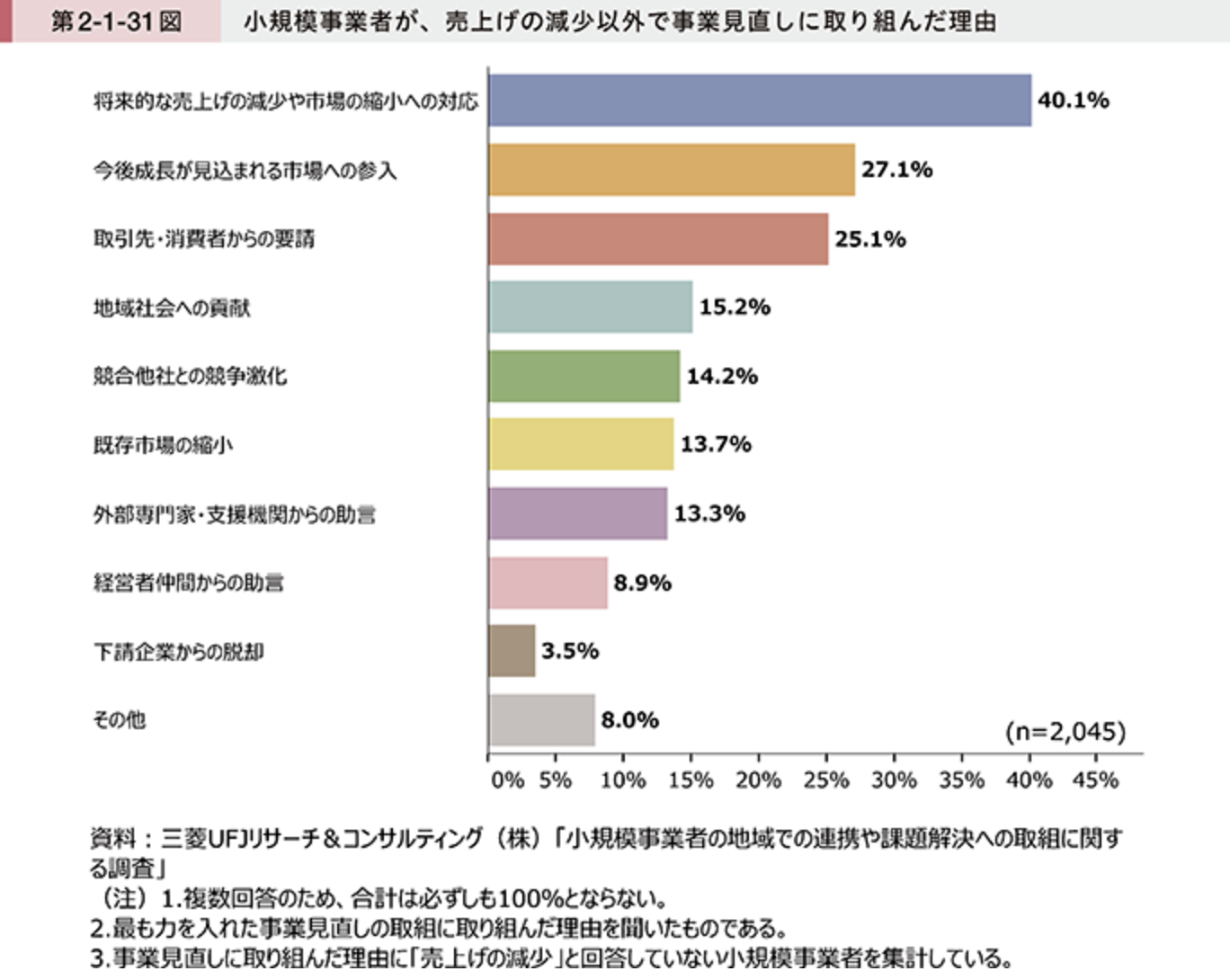 営業リソースの不足は、多くの企業の成長を妨げる大きな課題となっています。中小企業庁の調査によると、事業見直しに取り組んだ企業の約3割が「知識・ノウハウの不足」を、約23.5%が「販売先の開拓・確保」を課題として挙げています。