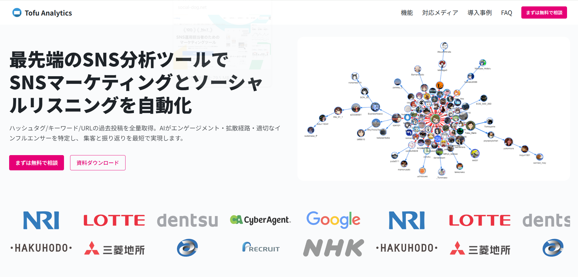 | 特徴・強み | ・純国産ツールで日本語対応も安心 ・ハッシュタグやURLの詳細分析が可能 ・必要な機能だけ選べるコスパの良さ |
