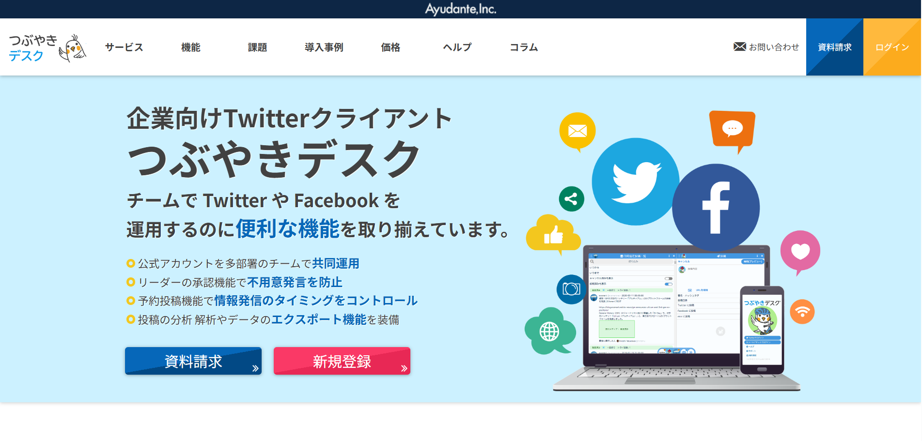 つぶやきデスクは、複数人でのTwitter運用に特化した、企業・自治体向けの国産SNS管理ツールです。投稿予約やアカウント分析はもちろん、投稿前に上長が内容を承認できる「承認ワークフロー」や、複数のタイムライン管理、DM一斉送信機能など、チームでの安全かつ効率的な運用をサポートしてくれます。