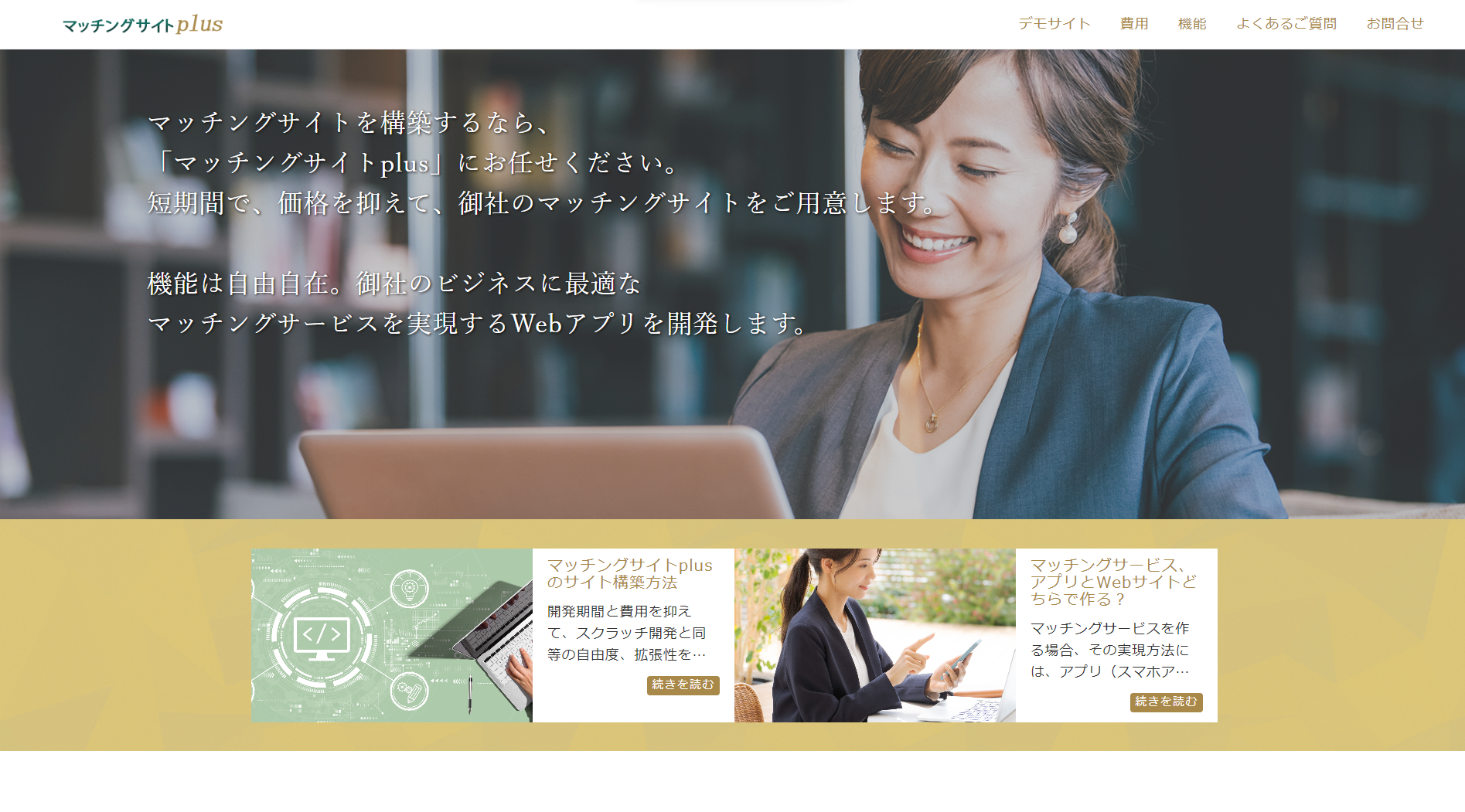 提供している「マッチングサイトplus」は、短期間・低価格でマッチングサイトを作成できるサービスです。会員機能、コンテンツ掲載など、マッチングサービスに必要な基本機能はもちろん、お客様のニーズに合わせて各種機能を追加可能な点が魅力です。充実の検索、メッセージ機能で、需要と供給をしっかり結びつけるサイト作りを行っています。