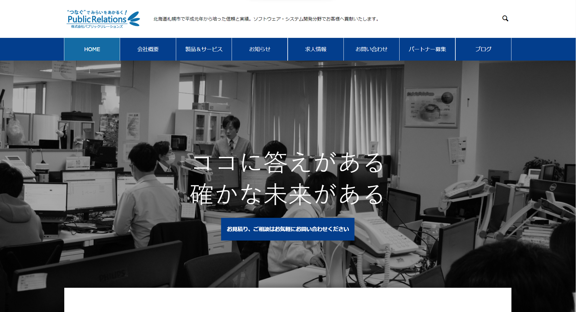 株式会社パブリックリレーションズは、北海道札幌市のシステム開発会社です。業務アプリ、クラウドサービス、インターネットデバイスなどを「つなげる」ことで、新たな価値を提供しています。