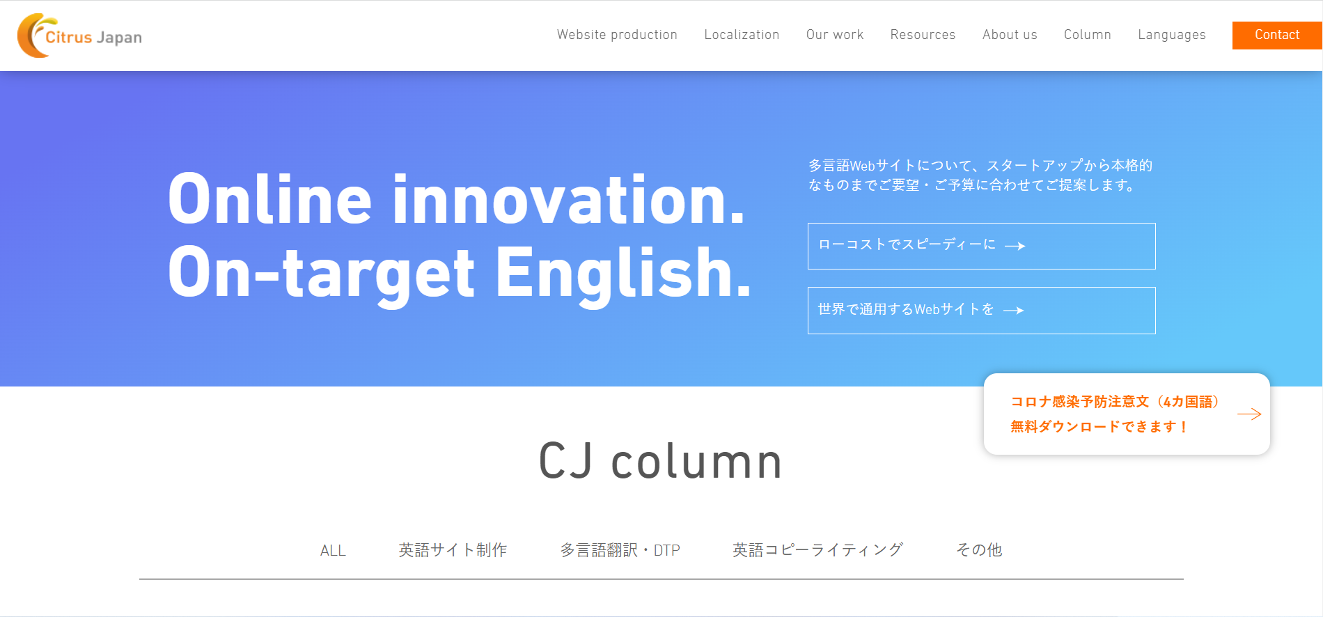 株式会社シトラスジャパンは東京都新宿区に本社を構える会社です。日本語を含めた多言語でのWEBサイトの企画制作を行っています。