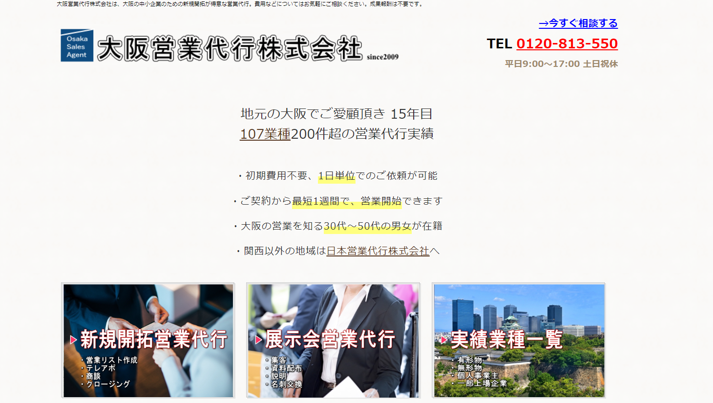 大阪営業代行株式会社は、大阪府大阪市に本社を構え、関西エリアに対応する営業代行会社です。日本営業代行株式会社、名古屋営業代行サービスなど、拠点を東京都、愛知県にも構えています。